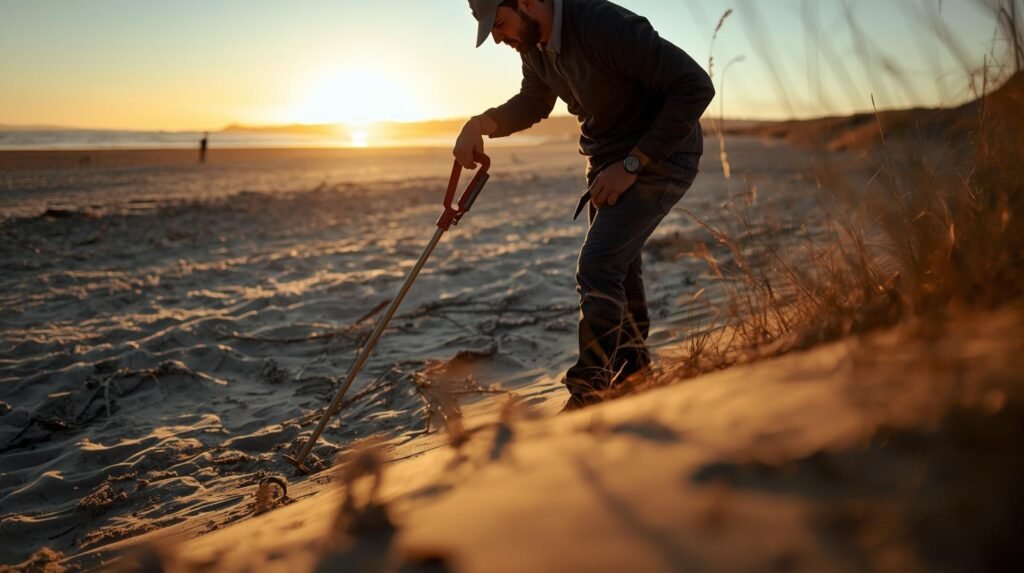 - Lleva pinpointer, pala y bolsa para residuos (deja la zona limpia).